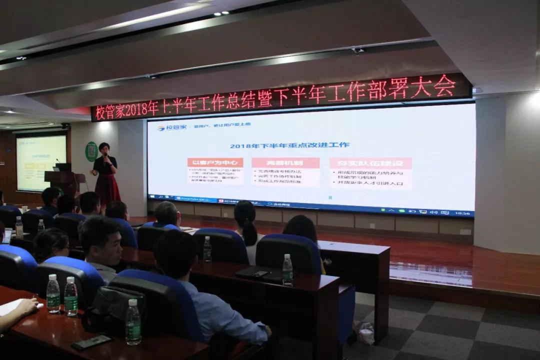 邵总在会议中还部署了2018下半年的工作,继续强化了“以客户为中心”的工作理念,全部工作都是为了让我们的客户获得更大的价值,为了让客户的利益更大化。同时加强校管家研发服务团队的队伍建设,为客户提供更优质的产品与服务打造更强大的后勤保障。