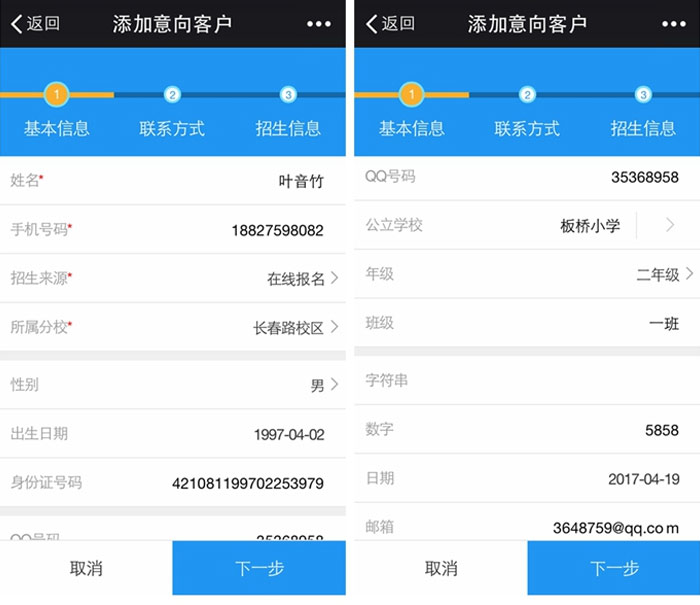 老师可以直接通过手机来完成意向客户的添加(红色星号标记的为必填项)