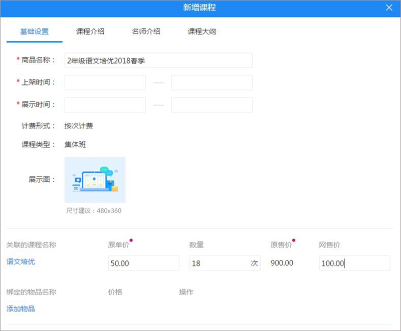 操作方法:新增课程/修改课程时,设置展示时间