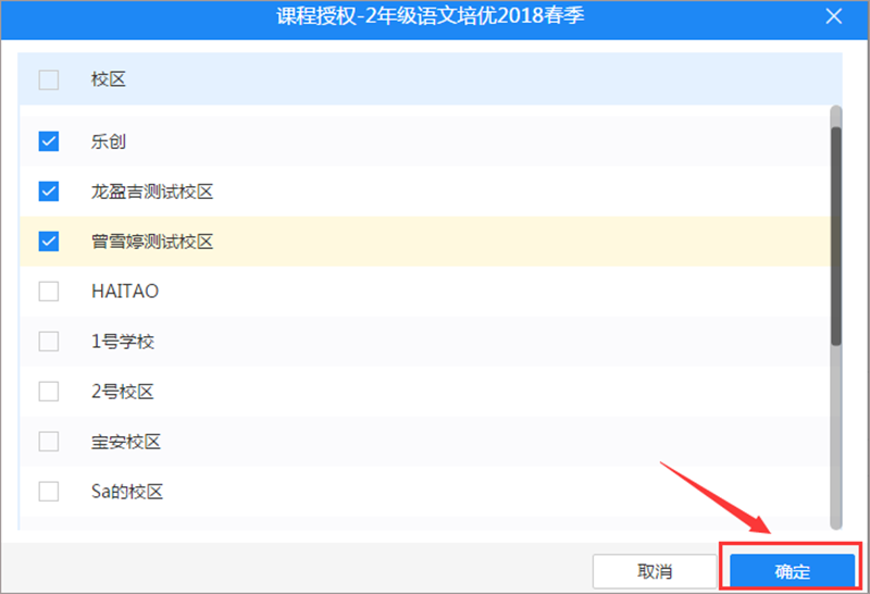 3、新增成功后再授权给需要卖该课程的校区,并分别设置单价。