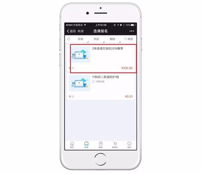 4、商城显示效果如下(家长点击课程即可报名)。