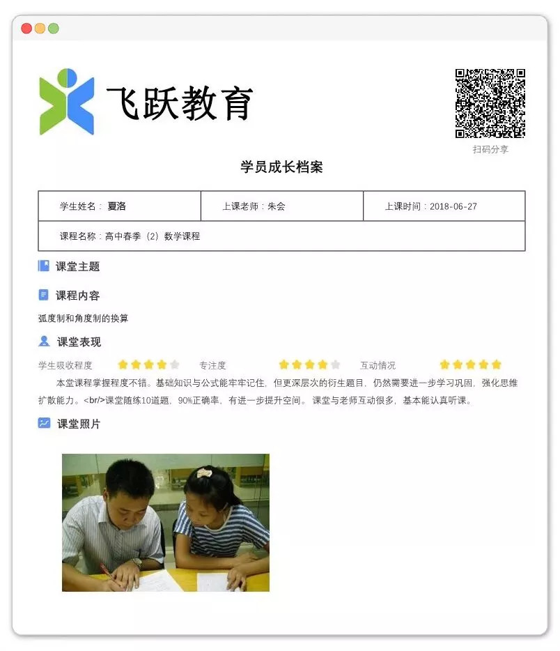 新功能|学校可以打印上课点评,建立学员成长档案