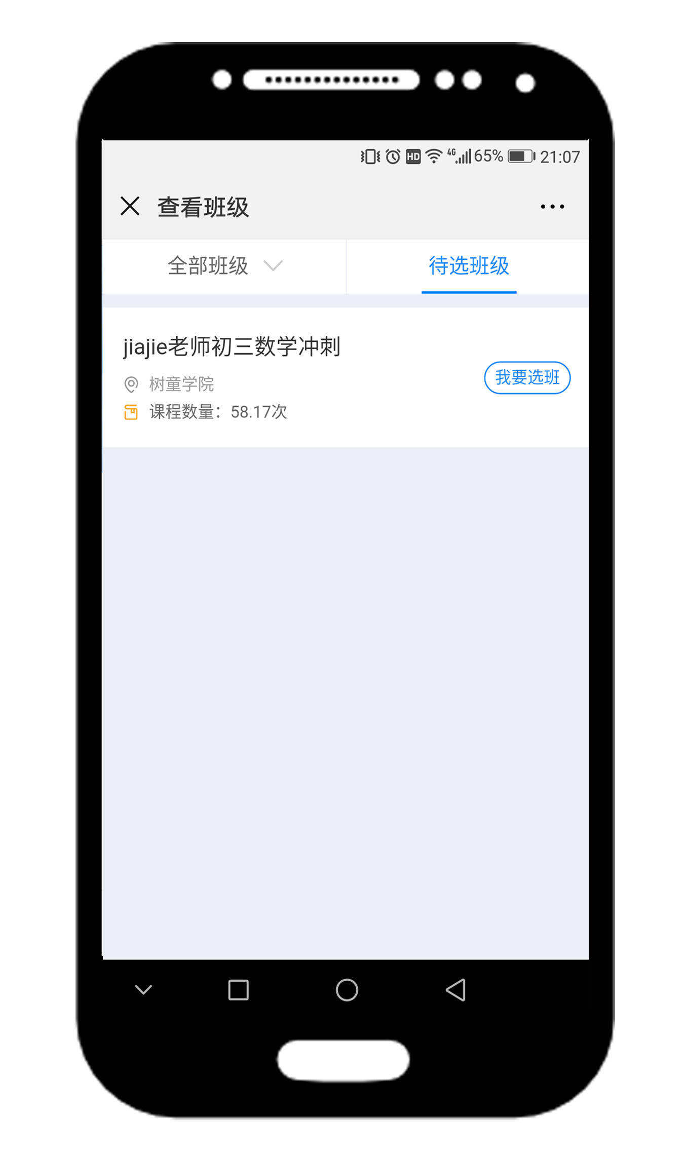家长端师生信>查看班级>我要选班